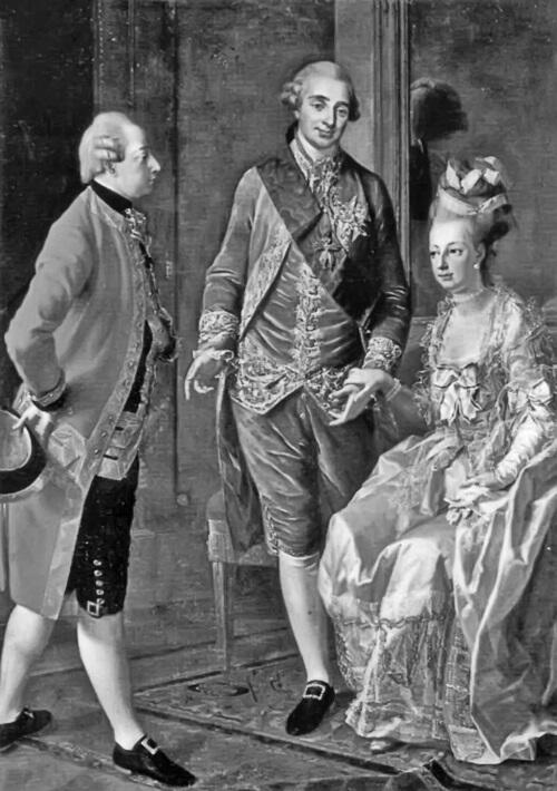 Мария-Антуанетта, Людовик XVI и Иосиф II. Йозеф Хотцингер. 1776 г. Музей истории искусств