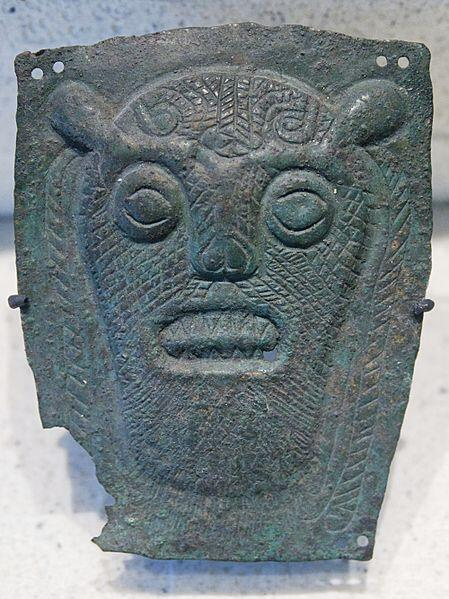 Настенный светильник, горгонейон. Бронзовая пластина со штампованной декорацией, конецVIIв. до н. э., Фивы, Кабирион.