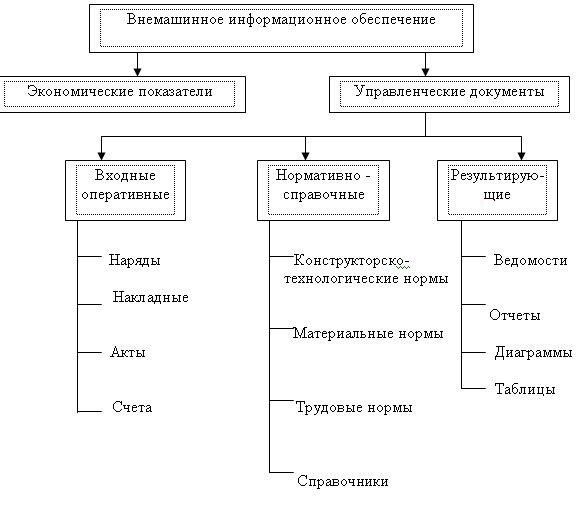 В свою очередь, локальное ИО АРМ делится на внемашинное и внутримашинное. Внемашинное ИО это множество бумажных и других управленческих документов, воспринимаемых человеком, а также методов их построения. Рассмотрим структуру внемашинного ИО, представленную на рис. 2.9. Экономический показатель это неделимая совокупность реквизитов-признаков и одного реквизита-основания, образующих экономический смысл.