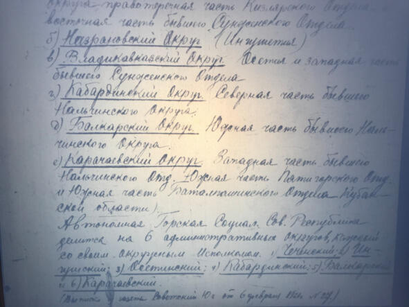 Лист 163. Груздов у аппарата Зубков. Вы меня вызывали, слушаю вас, здравия желаю. Первое. Я ожидаю для доклада наштаСКВО, ваше соображение по вопросам переданным вам через тов. Булина сегодня в часов. Второе, сведениям начсостава СКВО районы Алхан-юрт /Ермоловская/ находится банда численностью якобы до тысячи семисот штыков и сабель, 16/3. Назначено восстание. Будто бы чеченцы предупредили железнодорожную администрацию о том, чтоб последняя оставляла жел. дорогу так как она будет испорчена. Администрация уже запросила ОПС о наряде порожняка для эвакуации станции наштаСКВО приказал мне выяснить через вас насколько правдоподобны эти сведения, установить численность фактическую обстановку фактическую обстановку и фамилии главарей, третье комвойск считает, что 246 полк должен самым срочным порядком полностью сосредоточен в Грозном. Дабы в случае осложнений в Чечне мог принят быстро участие подавлений. Четвертое, комвойск считает, что если обстановка наиболее районе Грозном действительно серьезно нужно выехать Грозный лично. Пятое, комвойск считает, что Краснолавинский кавполк нужно немедленно перебросить в Каргалинская. Здравствуй тов. Зубков. Новых сведений подтверждающих присутствие банды в ауле Урус-Мартан.