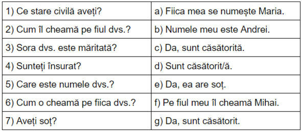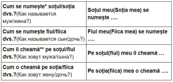 Например: Cum îl cheamă pe soțul dvs.? Soțul meu este Andrei.