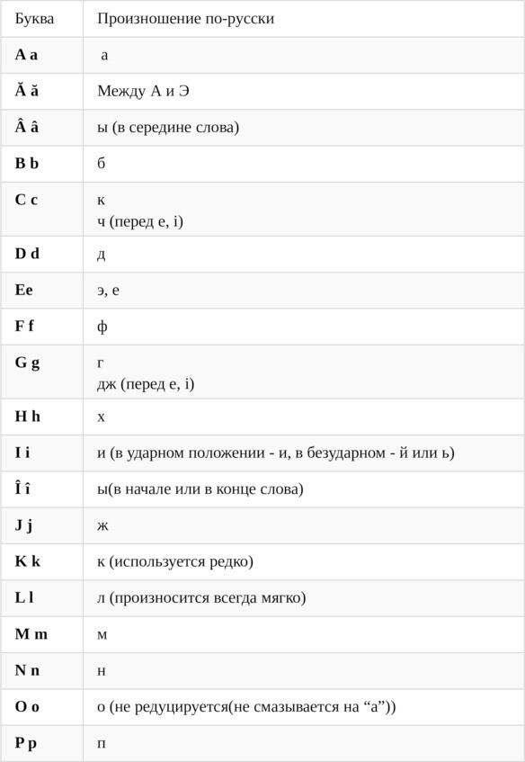 Мы специально не начинаем изучение языка с алфавита, а сразу с живых примеров. По желанию, вы сможете ознакомиться с алфавитом румынского языка чуть ниже.