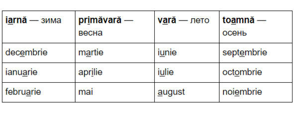 o zi/zile день/дни o lună/luni месяц/месяцы un anotimp/anotimpuri время года/времена года