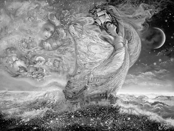 И, вот, отдыхая как- то под ивой на берегу реки Фарго увидел неземной красоты девушку, плывущую к нему в небольшой, резной ладье. У девушки были длинные, светлые волосы. Они сияли на солнце и, казалось, что само солнце вплетено в её косы. Синие васильковые глаза с нежностью смотрели на Фарго. А, из прекрасных, алых её уст лилась хрустальная песня о Любви, Радости и Солнце.