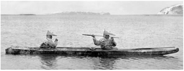 Охотники в байдарке. Умнак. Фото В. И. Иохельсона, 1910 г. МАЭ 2826109