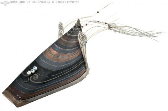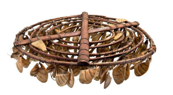 Погремушка-трещотка 18041805 гг. Аляска. Погремушки-трещотки являлись принадлежностью шаманских камланий и использовались для вызова духов. Пять обручей погремушки символизируют пять сфер, или миров, в которых обитали духи.