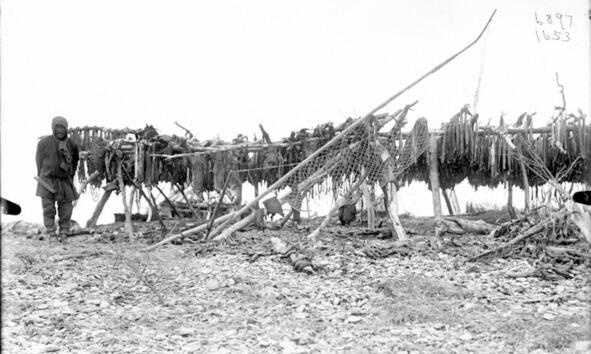 Сушка мяса в поселке Наукан // Экспедиция этнографа Александра Форштейна. Быт и уклад Эскимосов на Чукотке. 19271929 гг.