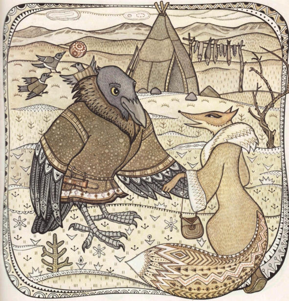 Чукотские сказки. «Ворон и лиса Нутэнэут». Иллюстрации Ирины Павлишиной. 1991 г.