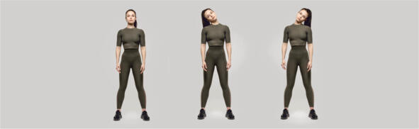 Исходное положение стоя, руки вдоль туловища. В исходном положении вдох и на выдохе медленно наклоняем голову к правому плечу, экспозиция 23 сек, вернулись в исходное положение. И снова вдох и на выдохе медленно наклоняем голову к левому плечу, экспозиция 23 сек, вернулись в исходное положение. Плечи не поднимать. Выполнить 34 раза.
