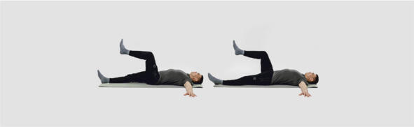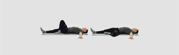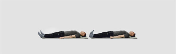 Исходное положение лежа на спине, ноги прямые вместе, руки в стороны на уровне плеч. Скользя пяткой по полу, согнуть левую ногу в коленном суставе и положить в левую сторону, вернуться в исходное положение. То же повторить правой ногой. Дыхание произвольное. Темп средний. Выполнить 4- 6 раз.