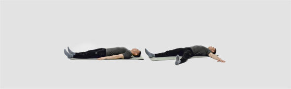 Исходное положение лежа на спине, ноги прямые на ширине плеч, руки вдоль туловища. В исходном положении вдох, на выдохе носки на внутреннюю сторону стопы. Держим на четыре счета. Темп медленный. Выполнить 46 раз.