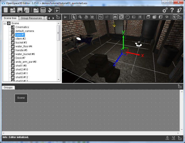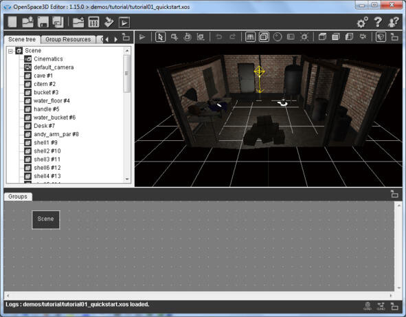В качестве примера откроем готовую сцену tutorial01_quickstart. xos папки OpenSpace3D\demos\tutorial с помощью меню Open scene или с помощью меню Import scene.