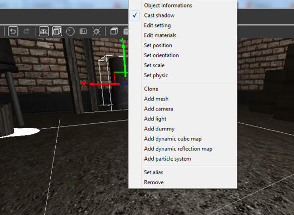 Для выбора объекта сцены кликнем на нем левой кнопкой мышки. После этого для редактирования его свойств или его удаления кликнем правой кнопкой мышки.