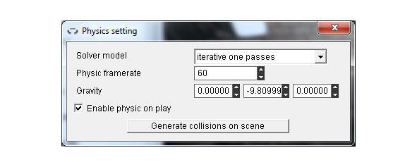 Нажмем правой кнопкой мышки на узле Scene и выберем Set physic setting.