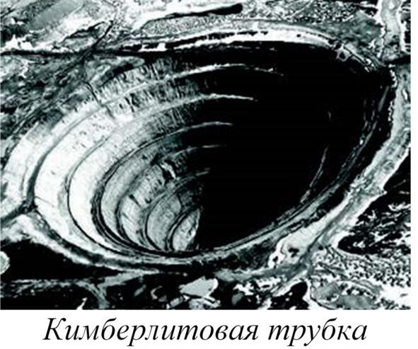 Однако уже на небольшой глубине глина исчезла, превратившись в твердую зеленую породу кимберлит такое название горная порода получила в честь города Кимберли в Южной Африке, где впервые в 1870-х годах началась добыча алмазов.