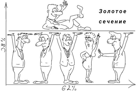 Неприязнь ли античных греков к окончившему свои дни в тюрьме Фидию или их недовольство результатами деления земельных участков, когда на каждую единицу достававшейся им площади себе Евклид нарезал 1,62 единицы, сыграли решающую роль, но с тех пор повелось деление какой-либо величины в отношении 62% и 38% назвать брезгливо «фи» и обозначать соответствующей греческой буквой. Факт, надо признать, печальный, поскольку, как впоследствии выяснилось, данный коэффициент широко представлен в живых системах и предметах искусства. С легкой руки Ома эта пропорция вошла в обиход как «золотое сечение», да и число Ф стали называть также золотым.