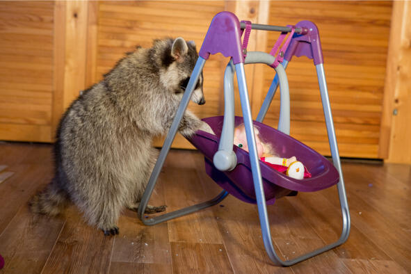 При содержании в разных комнатах, не забудьте про звукоизоляцию: енот своими играми ночью может мешать ребёнку спать.