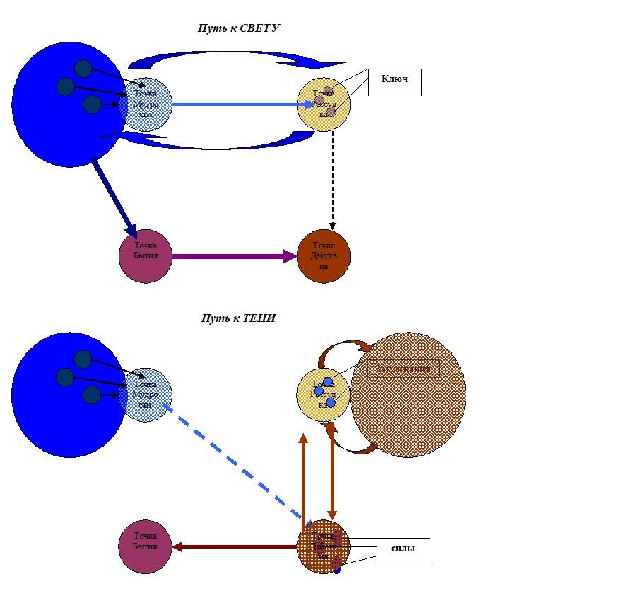Этот шаг полностью разрывает связь с ПРАВОЙ СТОРОНОЙ, а значит, человек теряет своё главное преимущество способность существовать как УЗОР ЖИЗНИ. Вернее, сама структура остается, но она развивается уже независимо от воли человека и фактически противостоит ему. Поэтому единственным направлением движения становится развитие тела ТЕНИ, а поскольку на этом поле действует множество сил, гораздо более могущественных, чем «новоиспеченный маг», то почти всегда конечным пунктом становится полная зависимость от этих сил. Есть теоретическая возможность обретения АБСОЛЮТНОЙ ВЛАСТИ, но она исчезающее мала.