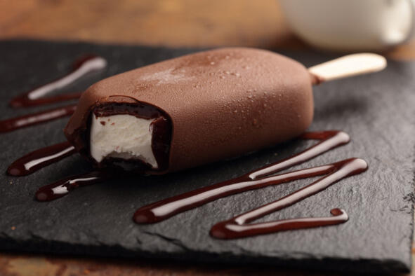 В стаканчики из морозилки влить молочную смесь. Воткнуть в смесь деревянные палочки