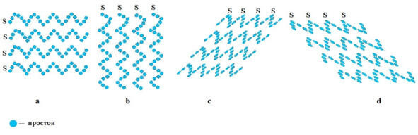 S Силовые нити, a b c d расположение их в различных плоскостях