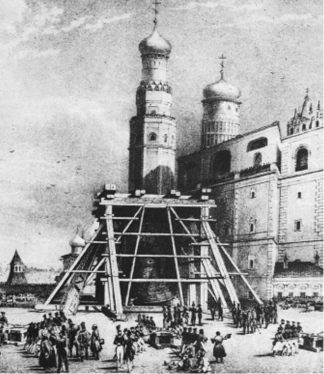 Царь-колокол упал с горящего деревянного постамента, дал трещину, и от него откололся кусок весом в одиннадцать тонн.
