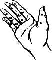 п, р суставы большого, пальца. с, т, у суставы указательного пальца. ф, х, ц суставы среднего пальца. ч, ш, щ суставы безымянного пальца. э, ю, я суставы мизинца.