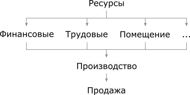 Механизм функционирования бизнеса в общих чертах состоит из двух этапов: вначале бизнес привлекает финансовые, трудовые и материальные ресурсы, чтобы в дальнейшем произвести и продать востребованные рынком товары и услуги. Обратите внимание, что в бизнесе не так важно произвести продукт (услугу), как важно его продать; но еще важнее получить с довольного клиента деньги. И самое главное в бизнесе сделать клиента успешным, тогда он вновь и вновь будет покупать ваш товар и приносить вам деньги. Общая схема функционирования бизнеса представлена на следующем рисунке: