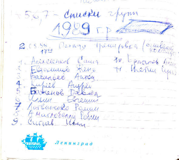 Знаете, когда растешь, очень важно окружать себя теми людьми, с которыми ты можешь раскрепоститься, и с кем тебе комфортно. Так было с первым тренером. Румянцев Николай Анатольевич. Помню, как на первой тренировке он записывал новых ребят в свой блокнот. У меня даже есть фотография со списком ребят из блокнота тренера.