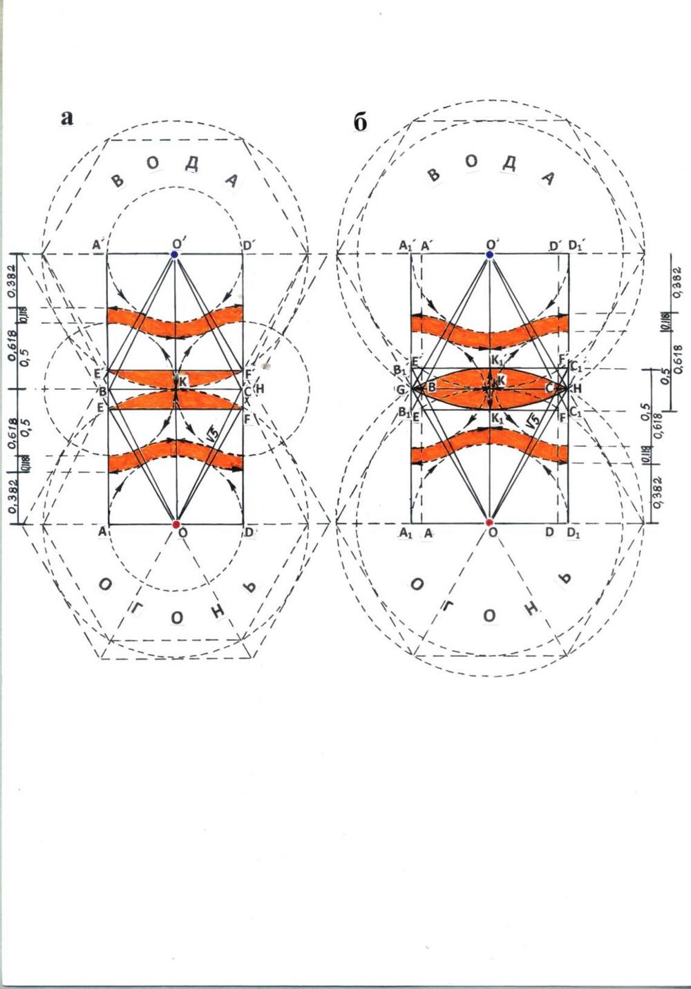 Рис. 5. Линза Света, как золото сеченый модуль напряжения, определяющий неразрывную связь космических стихий в созидающем луче Света (двухмерное отображение)