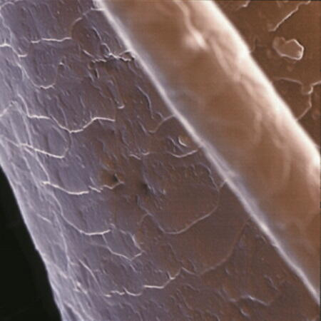 Здоровый волос в хорошем состоянии: чешуйки кутикулы лежат ровно.