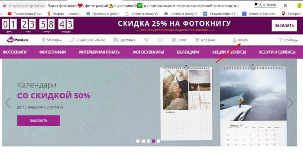 В любом браузере, где вы обычно работаете, в адресной строке набираете https://netprint.ru/. После загрузки у вас адрес может поменяться на такой https://moscow.netprint.ru/. Это нормально. Вы должны увидеть примерно такой экран.