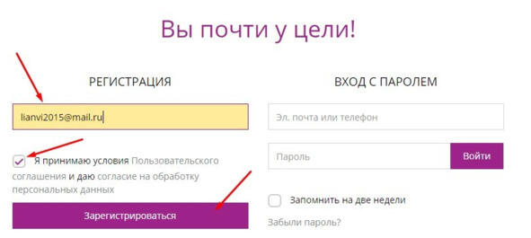 Получаем следующий экран. В нём заполняем в левой части свой e-mail. Ставим галочку.