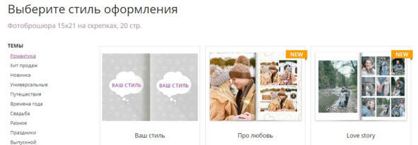 Выбор типа фотокниги