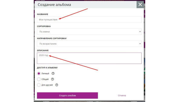 Создание альбома в сервисе