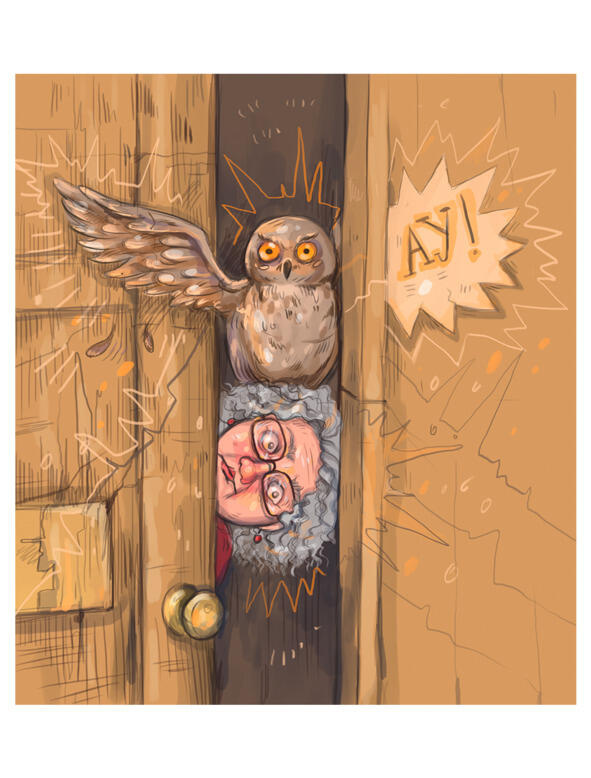 Рывком врубаю свет и тут же вырубаю обратно, потому как предмет в проёме оказался половиной головы соседки, заглядывающей в квартиру сквозь толстые линзы очков.