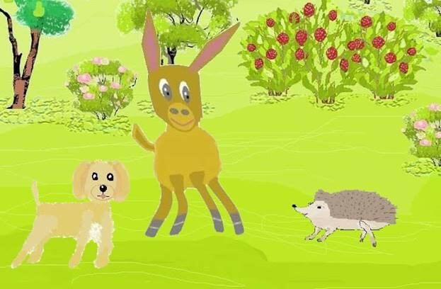 Почувши, що у сусідів з'явився їжачок, ослик прийшов до них подивитися на нового мешканця, а заодно і познайомитися.