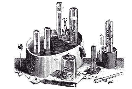 Оборудование (включая пневматическую ванну), которое Пристли использовал для экспериментов с новыми эфирами или газами.