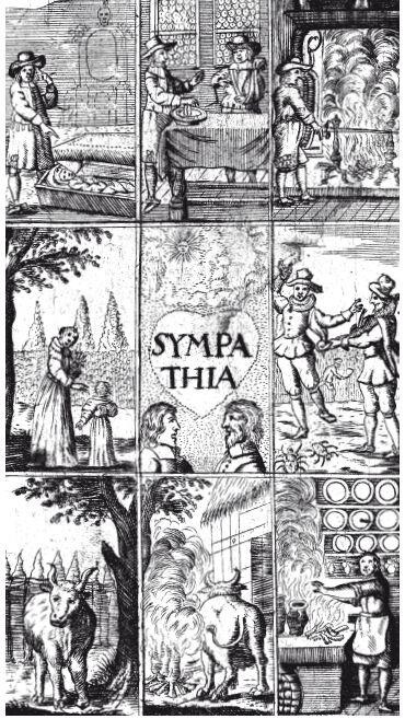 Иллюстрация на обложке книги о симпатическом порошке мистической мази, исследуемой ван Гельмонтом и другими ранними предствителями протонауки.