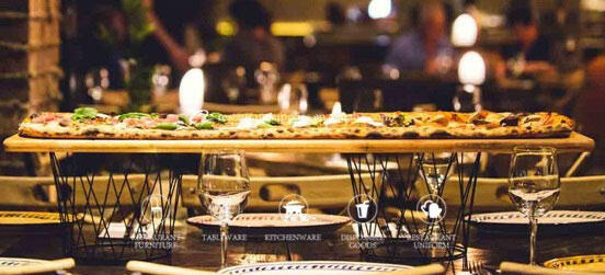 Она применяется в тех случаях, когда необходимо поднять пиццу большого размера над уровнем стола, чтобы осталось достаточное свободное место для остального заказа. Рекомендуется использовать такую подставку при обслуживании нескольких людей за одним столом, которые заказали большую пиццу на основе романского или сицилийского теста и другие блюда.