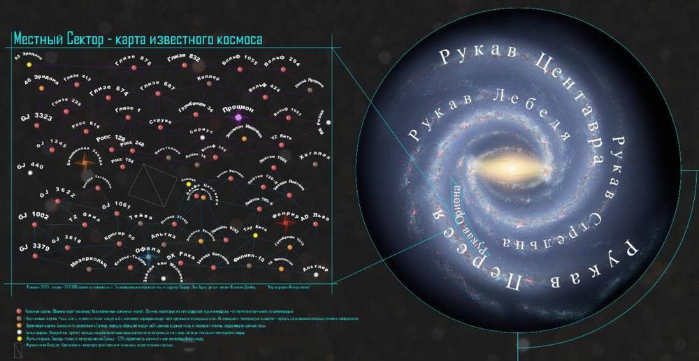 Местный сектор в 2193 году от рождества Христова основная сцена для разворачивающихся в книге событий. Около шести десятков звезд, заселенных в равной степени Свободной Конвенцией и Человеческим Протекторатом, разбросаны в сферическом диапазоне радиусом около 20 световых лет от Солнца. Все нанесенные на карту звезды существуют в реальном мире в тех же астрономических параметрах, и при тех же расстояниях от Солнца но, при переносе на двухмерную карту, было принято крупное допущение, что имеет значение только расстояние до Солнца, а не их расположение относительно него.