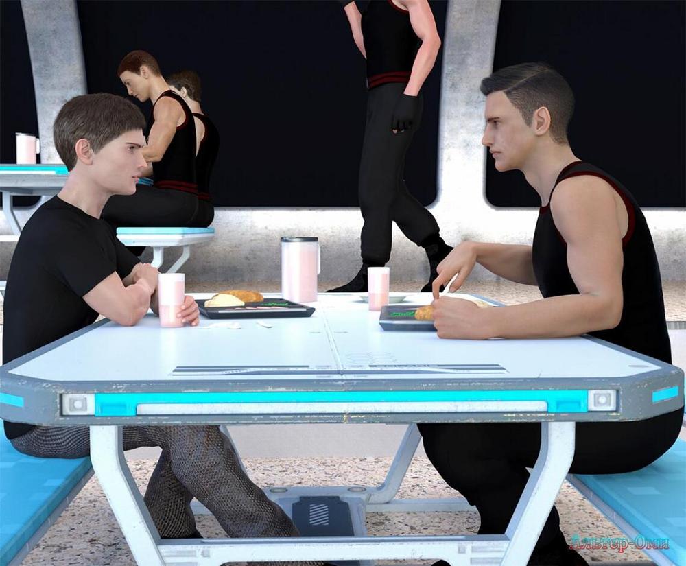 Чен сидел напротив и спокойно ел, изредка поглядывая на Элла, и когда через несколько минут новичок так и не прикоснулся к еде, он положил ложку и окликнул его: