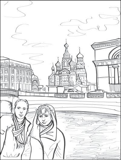 Вскоре мы проходим пересечение Львиного переулка и улицы Декабристов, потом сквер с установленным здесь памятником композитору Глинке (рядом распложена Консерватория), и перед нами наконец Театральная площадь и Мариинский театр. Театр похож на корабль, плавно и царственно парящий, недосягаемый и доступный одновременно. Возле входных дверей фланирует небольшая толпа: кто-то стреляет билеты, кто-то их предлагает, а мы сразу продвигаемся внутрь. Здесь вручаем билеты девушке в форменной одежде театра ярко-изумрудного колера и отправляемся искать наш гардероб. Именно «наш», потому что гардеробов в театре несколько, на каждом ярусе и у каждой ложи свой. Миниатюрный гардероб и такое же милое буфетное окошко с бутербродами и газированной водой по неоригинальным ценам (каждая единица товара по сто рублей, видимо, в целях облегчения жизни иностранных туристов, плохо ориентирующихся у русских прилавков).