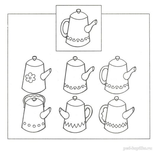 Потренируем внимание. Внимательно посмотри на картинку, найди пару чайника:
