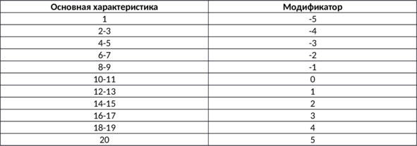 Модификаторы Характеристик (М): в большинстве формул используется не полное значение Характеристик, а так называемый модификатор. Модификатор = (Основная характеристика 10) ÷ 2.