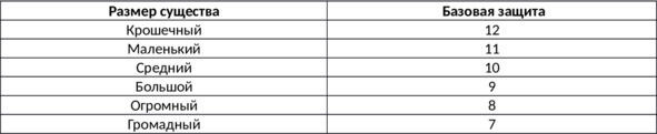 Базовая защита (БАЗщ) отражает защиту неподвижного существа. Высокая БАЗщ обычно указывает на небольшой размер существа или на иные факторы, затрудняющие попадание, но не связанные с подвижностью или защитным снаряжением. БАЗщ = |10 ± БШР|