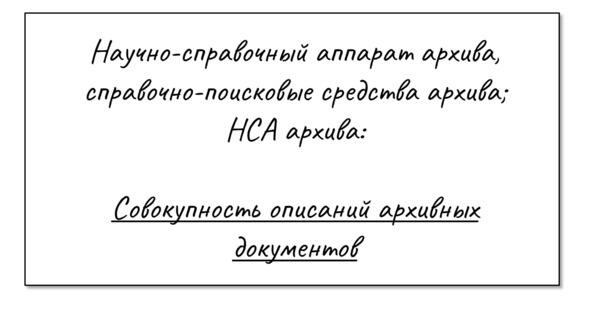5.3.1. Комплекс взаимосвязанных и взаимодополняемых, создаваемых на единой научно-методической основе архивных справочников о составе и содержании архивных документов (система научно-справочного аппарата (НСА) архива) включает обязательные для ведения в архиве архивные справочники (опись дел, документов; путеводитель; систематический каталог) и дополнительные архивные справочники (указатель; обзор).