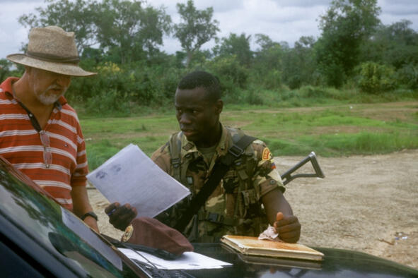 Военный проверяет наши документы, мы загружаем вещи и бочки с бензином в лодку и отправляемся в путь. Запасов взятого нами бензина должно хватить на всю долгую дорогу до Окамо и обратно.