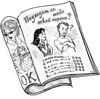 На 156-й странице оказался тест: «Подходит ли тебе твой парень?» Рядом фотография: девочка пялится на мальчика. Над головой у него был нарисован большой знак вопроса.