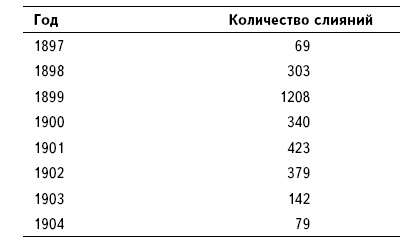 Таблица 2.1. Количество слияний, 18971904 гг.