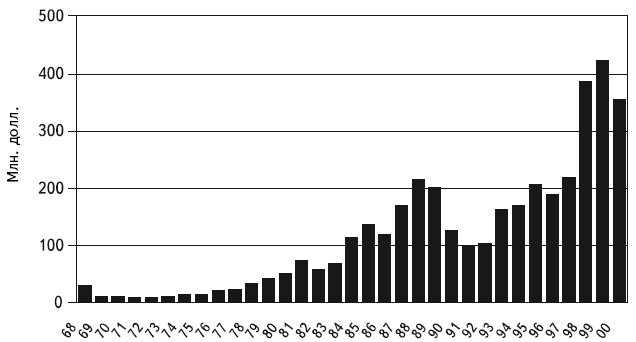 Рисунок 1.2. Средняя цена приобретения в США, 19682000 гг.